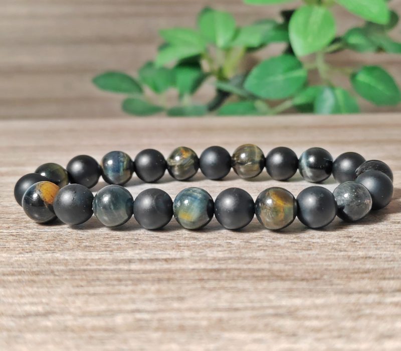 Negatív energiákat csillapító, fókuszt nerősítő ásvány karkötő, sólyomszemmel és matt ónixal